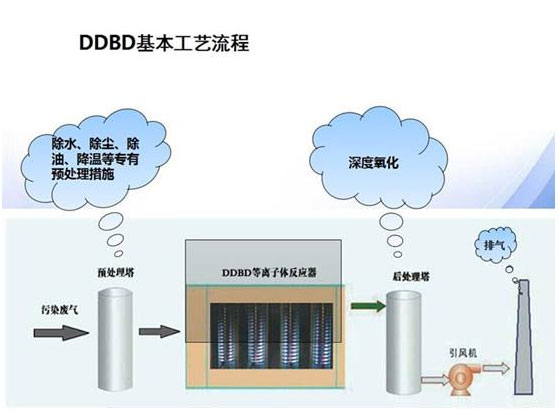當(dāng)外加電壓達(dá)到氣體的放電電壓時(shí),氣體被擊穿,產(chǎn)生包括電子、各種離子、原子和自由基在內(nèi)的混合體。低溫等離子體降解污染物是利用這些高能電子、自由基等活性粒子和廢氣中的污染物作用,使污染物分子在極短的時(shí)間內(nèi)發(fā)生分解,以達(dá)到降解污染物的目的。